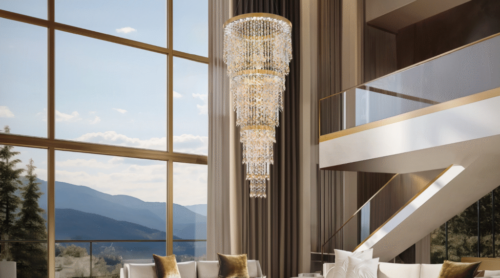 Both modern and crystal chandelier styles can do this effectively. The choice depends on whether the homeowner wants the space to feel more sleek and architectural or more elegant and expressive. In both cases, the chandelier becomes one of the most memorable parts of the room.